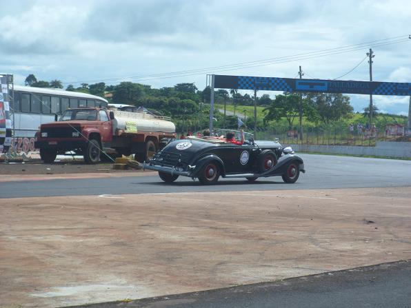 Já na pista, o Packard amarelo dá um show!